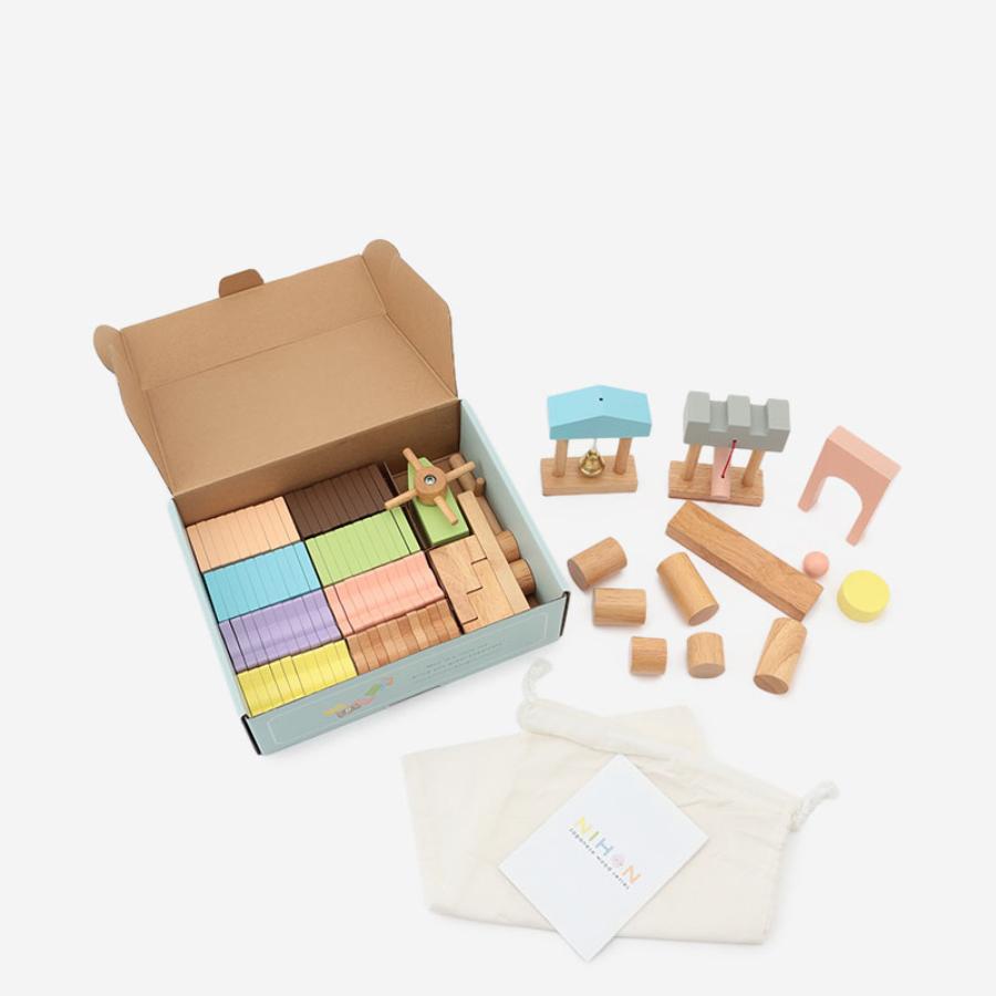 ベルなどのギミック付きということが嬉しいドミノセット。さらにドミノだけでなくブロックとしても遊べるのも魅力的。可愛い箱に入れて片付けも簡単ということも嬉しい。
