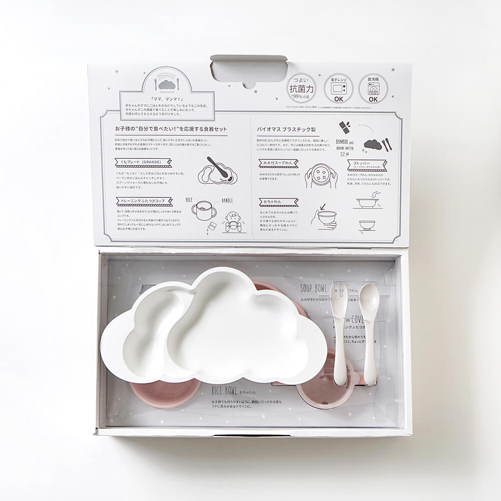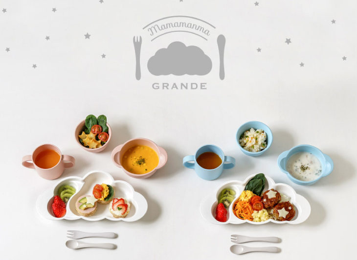 グランデサイズはプレート自体が少し大きめの為、メインの料理と果物やデザートを分けて入れる事が出来るのでプレゼントされたママの手間を省けて嬉しい!そしてセットが揃っている方が肝心のベビーちゃん自身とっても楽しい気持ちになること間違いなし!