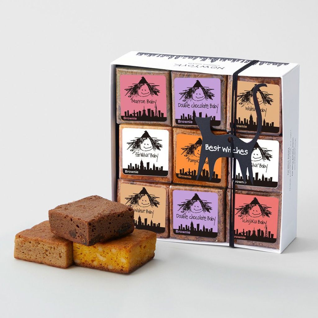 「いちじく」「パンプキン」「マロン」3種を各1個ずつと「オリジナル」「ダブルチョコレート」「ウォルナッツ」を各2個ずつを魔女の可愛い限定パッケージに詰め合わせた9個入りパッケージ。