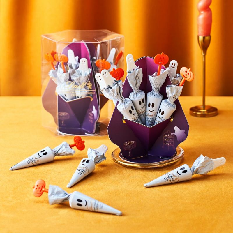 毎年人気の高いアンブレラ型チョコレートがたっぷりと。テーブルを囲んで食べるシーンを想定した、どこからでもチョコレートがとれるパッケージはハロウィンパーティにぴったり。