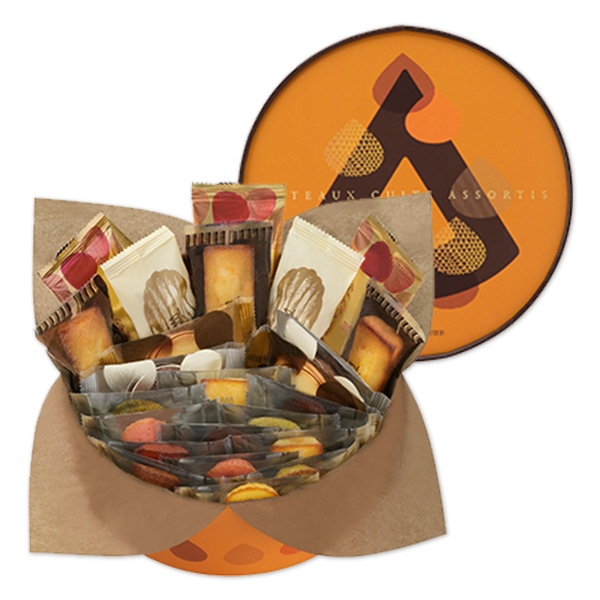 【フィナンシェ】3個、 【マドレーヌ】2個、 【ラング・ド・シャ】プレーン・チョコレート各2個、【プティ・ガトー・アソルティ】マドレーヌ、キャラメル、ピスターシュ、フランボワーズ各1個、フィナンシェ、ミルクチョコ、抹茶、フレーズ 各2個、【焼き栗モンブラン】3個