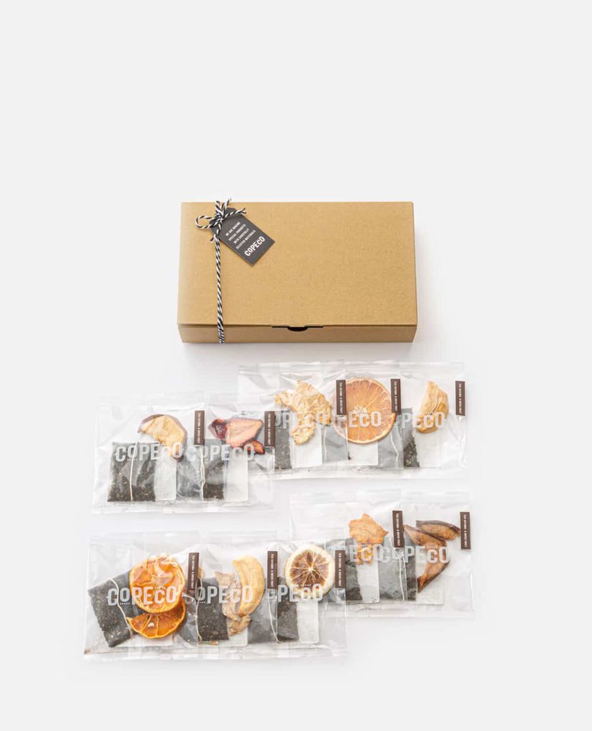 こだわりの中国茶×和歌山の素材の組み合わせは、ホッと一息のお供に最適な優しい味わい。クラフト紙がレトロで可愛いテトラポット型の包の中に、ティーバッグが一つ入っているので、配り用のプチギフトとしてもおすすめ。