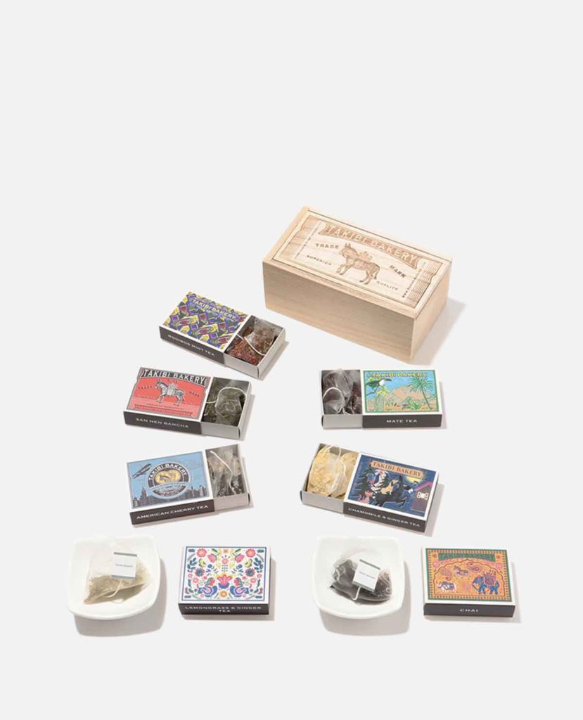 木箱に入った、異なる国をイメージしたマッチ箱のような小さな紅茶のセットです。