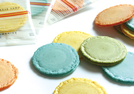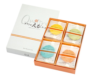 「海老菓子本舗 志満秀」から発売されている、まさにジャパニーズマカロン!!4種のチーズをサクサクの海老煎餅でサンドした、マカロンのような和スイーツ。