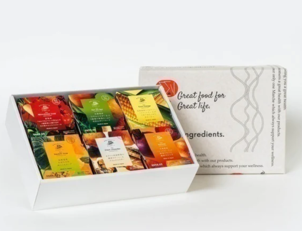 カップのままレンジで1分で国産野菜たっぷりのスープができあがり。洗い物も最小限。しかも常温で保存ができるから保存の手間もかからないママ友が最高に喜ぶ逸品。
