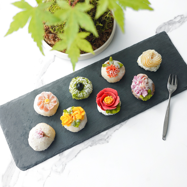 四季をイメージした彩り豊かに作られたおはぎは、一つひとつ丁寧に手作りされているのが分かる…繊細な飾り付けにうっとり。